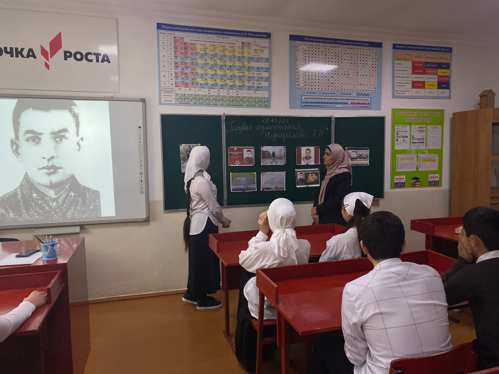 28.11.202328.11.2023 г. в МБОУ «Мелчхинская СШ» прошел открытый урок в 9 классе на тему «Подвиг пулеметчика Нурадилова Х.Н.». Учащиеся с интересом слушали, обсуждали подвиг отважного чеченца. Проведенное мероприятие позволило учащимся узнать о его героических поступках и вкладе в защиту родины. Это вызвало у учеников уважение к подвигам солдат и понимание важности защиты своей страны. Такие мероприятия также способствуют сохранению и передаче памяти о героических деяниях предков и формированию патриотических чувств у молодого поколения.