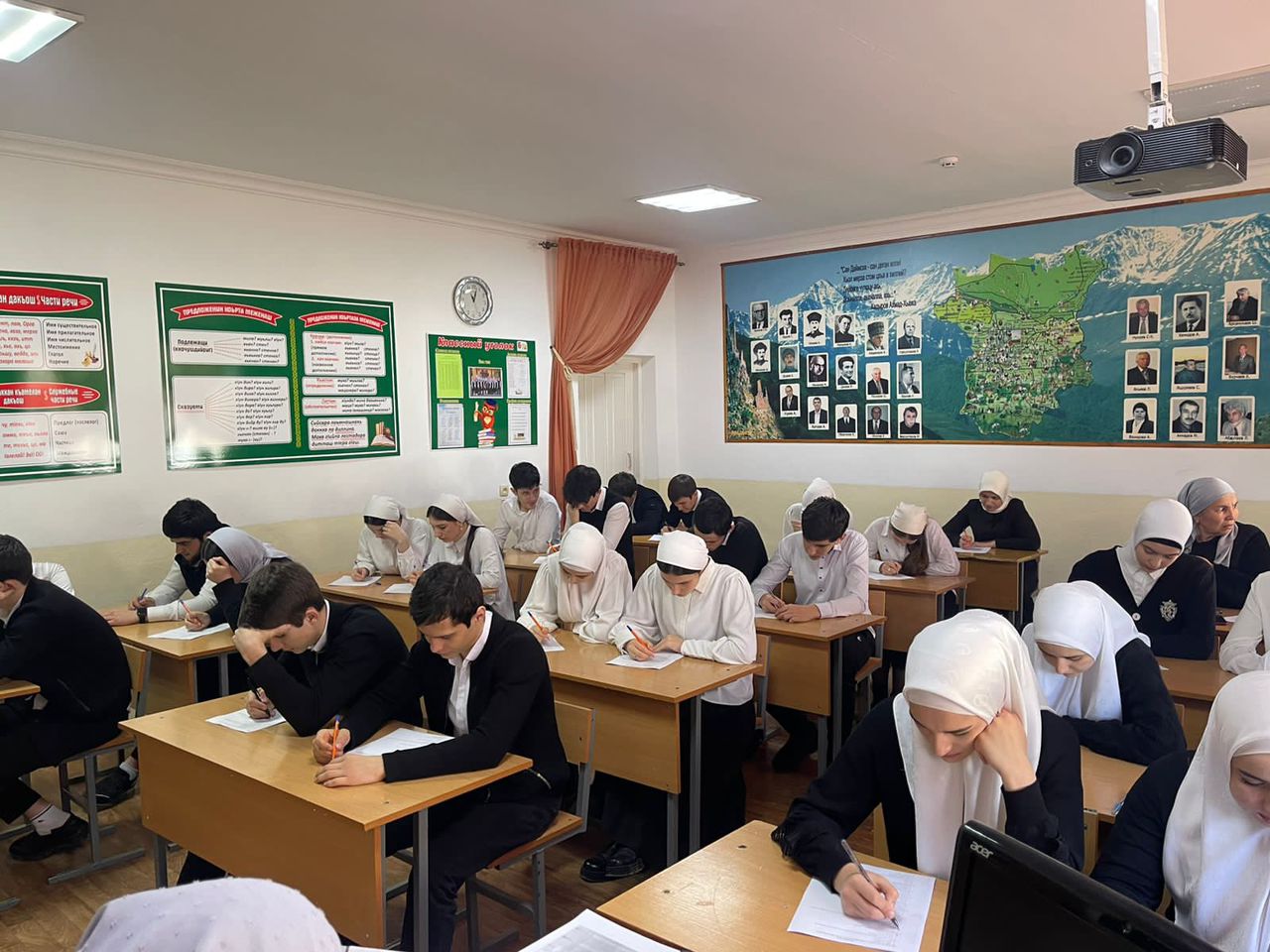 21.02.20232023 шеран чиллин беттан 21 - чу дийнахь Мелчхера йуккъерчу ишколехь д1айаьхьира "Беза, бовза ненан мотт!" ц1е йолу регионан этнографин диктант.